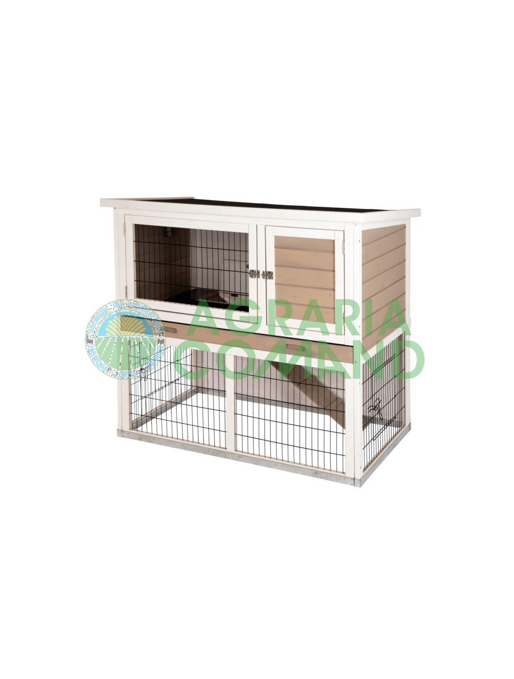 Conigliera in legno smaltato e naturale per conigli nani e non da utilizzare all'aperto, in giardino o sotto un portico.