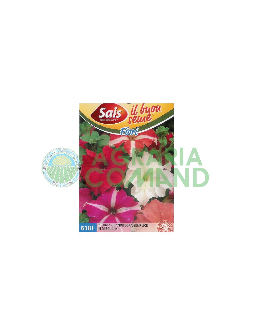 Petunia pianta annuale alta 40 cm. a portamento contenuto. Produce grandi fiori imbutiformi, larghi 8 - 10 cm. di vari colori.Indicata per ornare balconi, terrazze, aiuole. La semina avviene a febbraio in semenzaio, impiegando 0,5 gr. di semi per mq. Il trapianto si compie da maggio in avanti in vasi di 10 cm., oppure in piena terra alla distanza di 50 cm. tra ogni pianta. Fiorisce da giugno ad ottobre. Predilige un'esposizione soleggiata e frequenti annaffiature. Tenere riparata dal vento; cimare regolarmente i fiori appassiti per stimolare nuove fioriture.