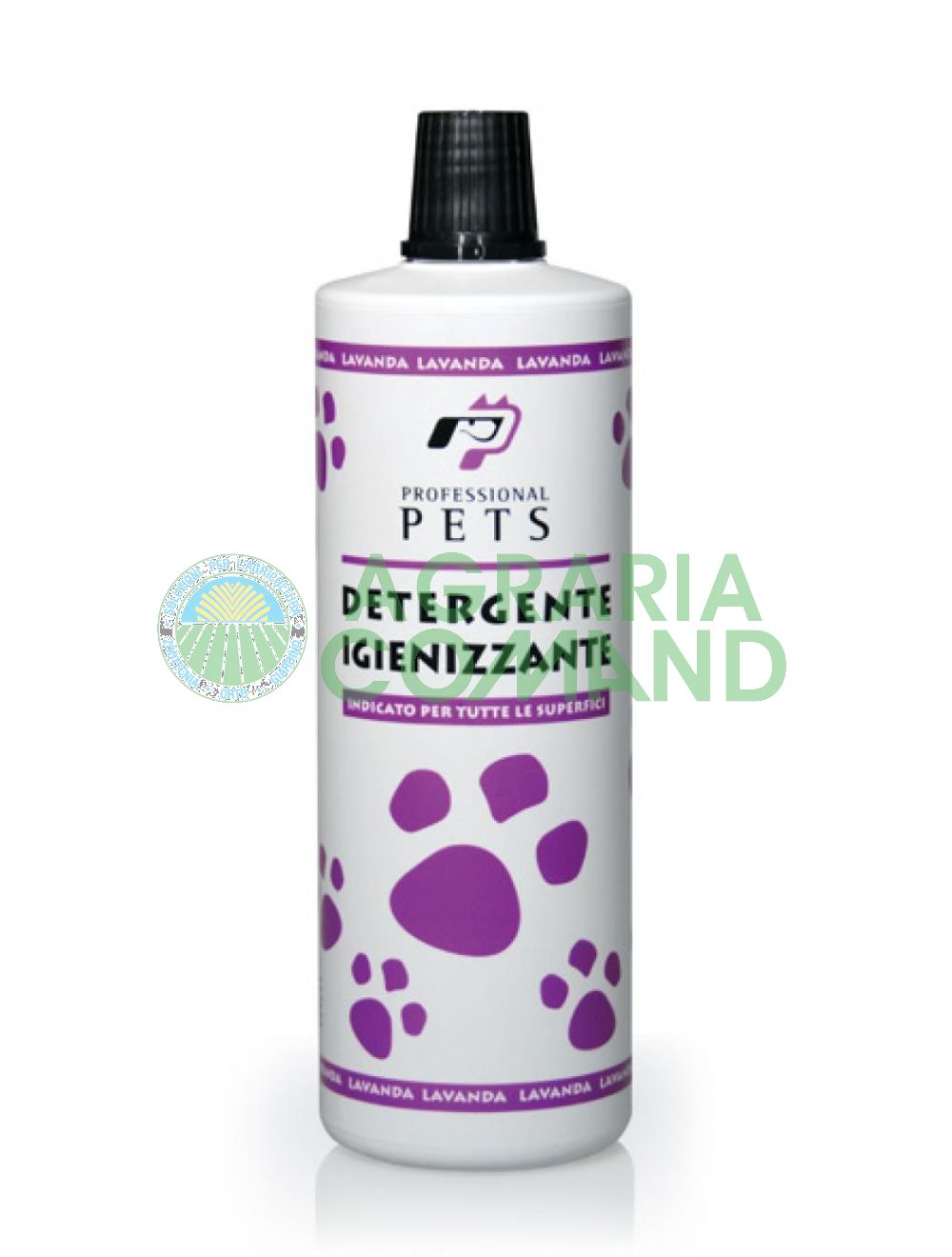Detergente igienizzante adatto alla pulizia di tutte le superfici nella versione da 1000 Ml. al profumo di lavanda. Il detergente Professional Pets ĆØ una formulazione bilanciata di essenze naturali e sali quaternari d'ammonio. Questi elementi rendono il nostro detergente un concentrato di alto contenuto attivo,indicato nella pulizia profonda di ambienti domestici dove vivono e soggiornano gli animali.