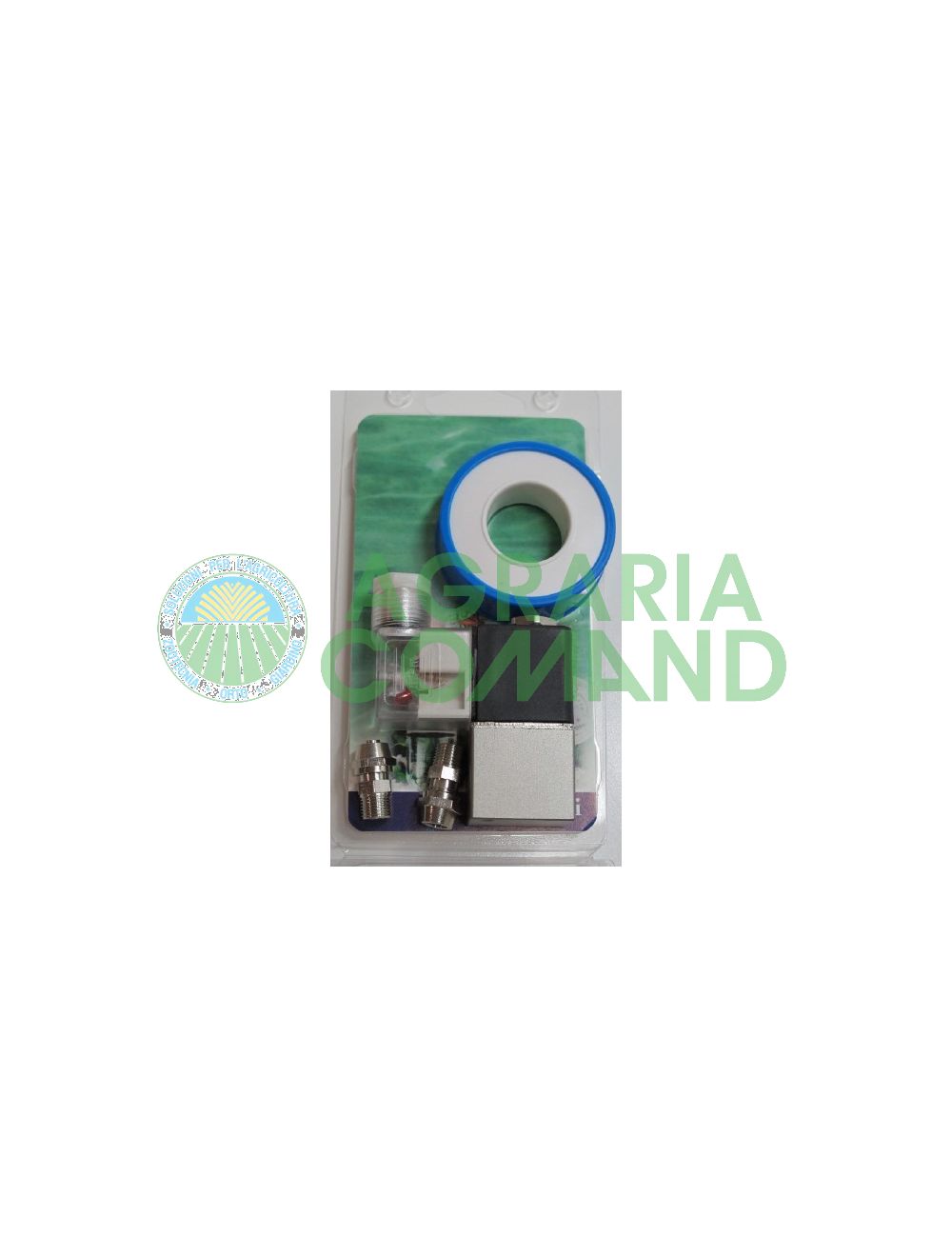 Elettrovalvola in alluminio per impianti di co2; l'elettrovalvola viene fornita in un kit comprendente: 1 elettrovalvola, 2 raccordi per il collegamento al tubo della Co2, 1 rotolo di teflon per collegare i raccordi all'elettrovalvola
