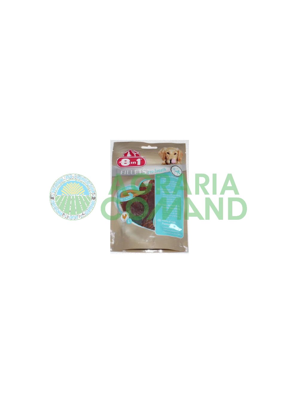 8in1 Fillets Pro Breath - per un alito fresco.contiene menta piperita e prezzemolo, utilizzati per contrastare l'alito cattivo anche negli essere umani. La menta piperita rinfresca l'alito e il prezzemolo contiene un'elevata quantità di clorofilla, in grado di neutralizzare le sostanze sulfuree, quindi maleodoranti, e ridurre il fenomeno dell'alito cattivo.