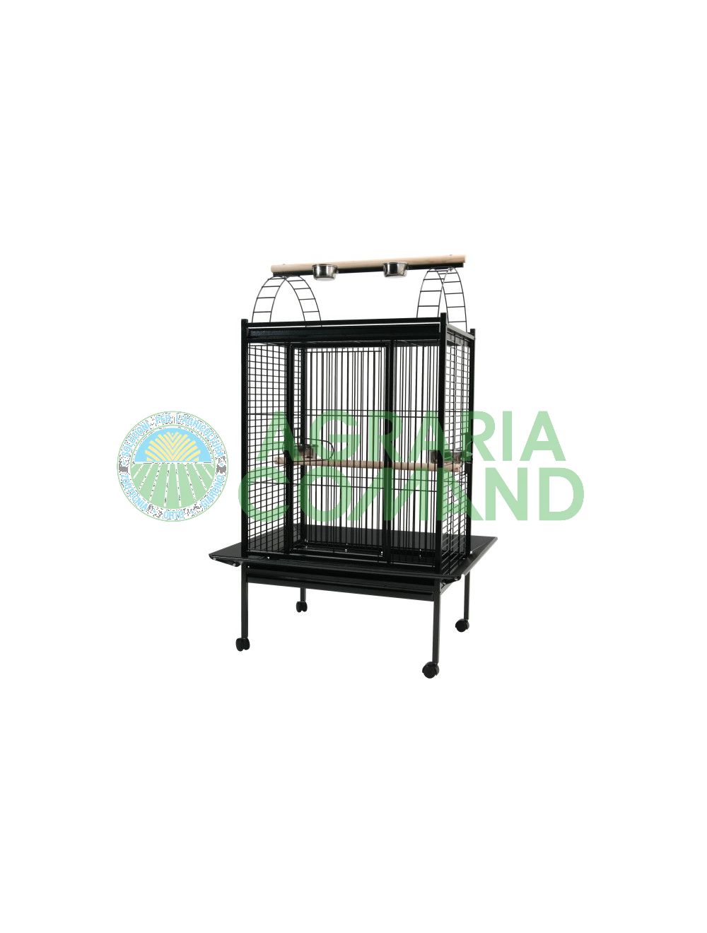 Gabbia per pappagalli di media e grande dimensione, studiata per favorire il benessere dell'animale ospitato, totalmente realizzata con materie prime atossiche. Dotata di cassetto estraibile per una facile pulizia e di bordi antischizzo per evitare di sporcare il pavimento; e di una porta superiore dove da accesso a due scalette e un posatoio in legno per fare uscire il pappagallo.