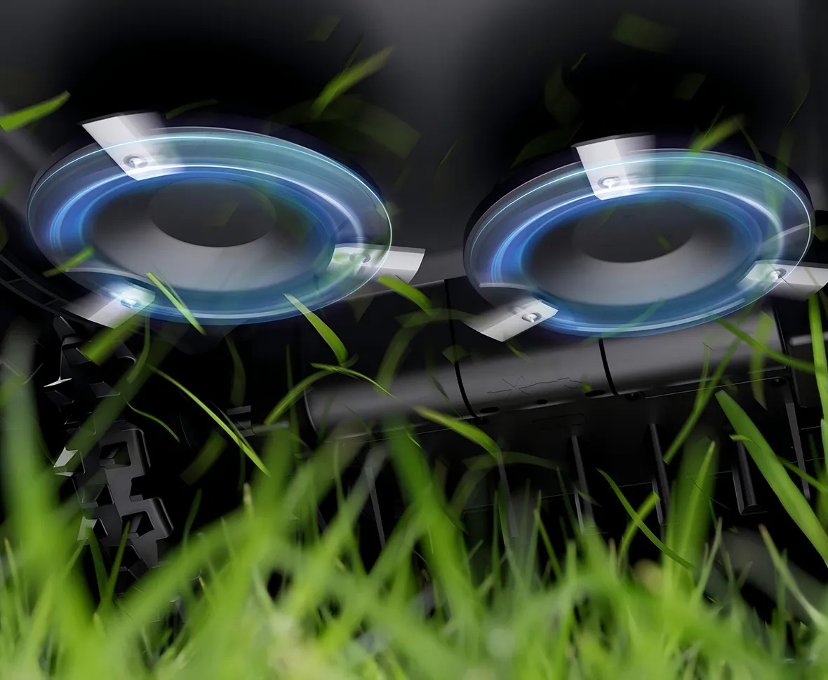 Piattaforma energetica 32V con dischi a doppia lama La piattaforma ad alta potenza da 32V offre un sistema a doppia lama senza interruzioni leader nel settore. In combinazione con la capacità di movimento veloce di 0,7 metri al secondo, offre un'efficienza di falciatura tripla*, una potenza di falciatura superiore dell'80%* e una velocità di rotazione superiore del 33%* rispetto alla generazione precedente, realizzando un'efficienza di falciatura eccellente di 400㎡/h* e un taglio super pulito, offrendoti prestazioni perfette per il prato. |