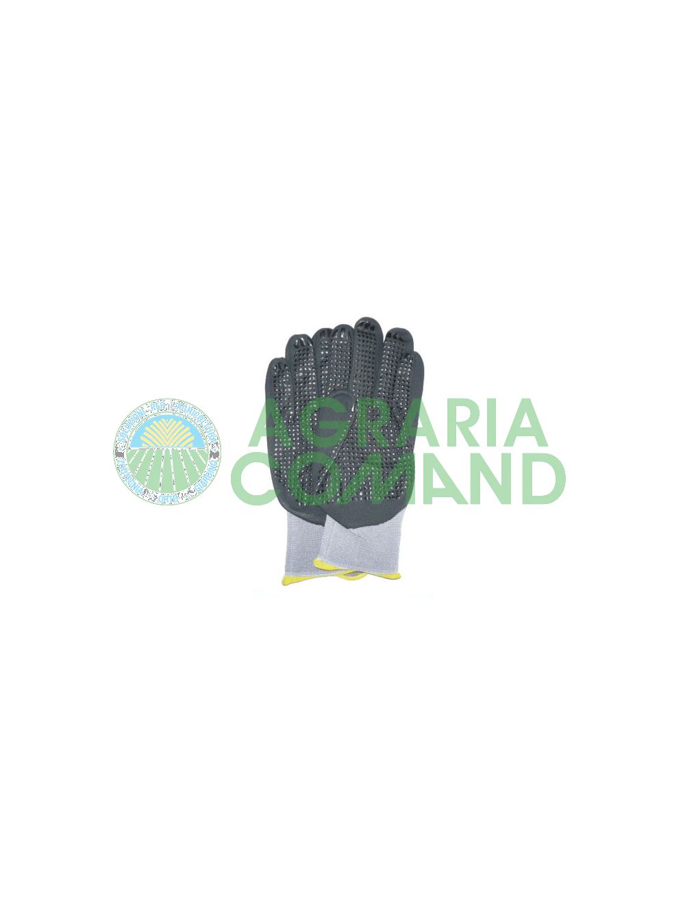 Guanto in maglia nylon nero senza cuciture con spalmatura foam nero, sul palmo e parte del dorso, puntinato per una migliore presa. guanto con trattamento antibatterico Sanitizad e Actifresh