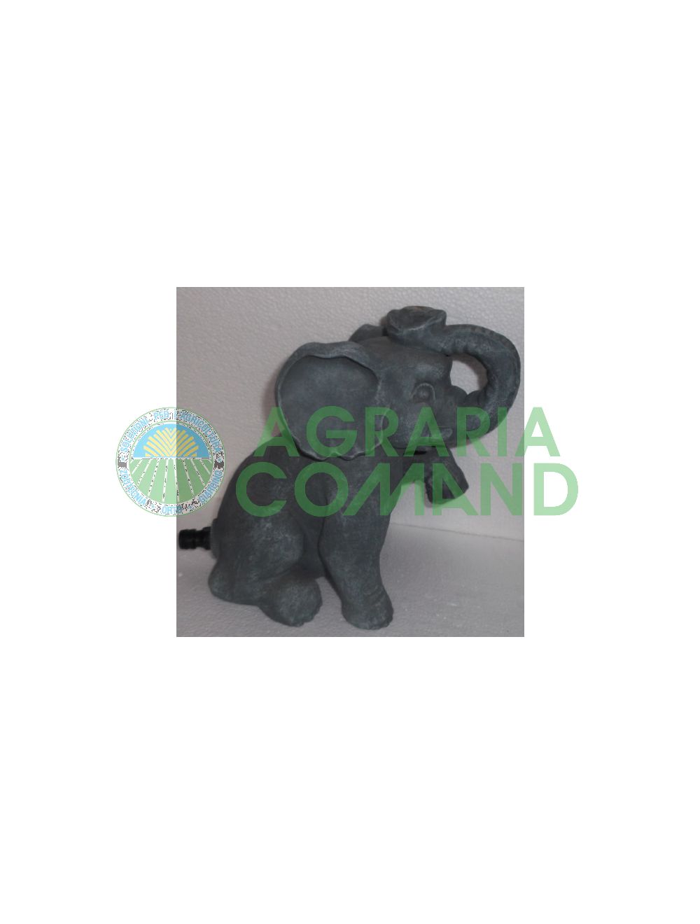 Irigatore per giardino in resina, robusto, con la riproduzione di un elefante con la zampa alzata. L'irrigatore ha l'ugello di uscita posto sulla proboscide dell' elefante , l' acqua quando esce ha un'effetto pioggia finissimo per un' irrigazione uniforme e delicata. L'irrigatore lavora a cerchio e ha un raggio di azione di circa 4 / 5 metri a seconda della pressione dell'acqua.