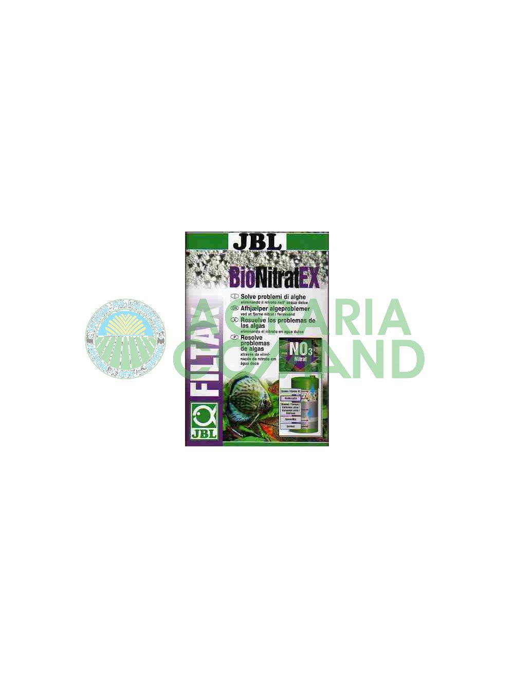 Acquario d'acqua salata: JBL NitratEx puo essere applicato anche nell'acqua marina procedendo come per l'acqua dolce. Si dovrebbe aggiungere al BioNitratEx nel filtro, uno strato di carbone attivo, per evitate intorbidenti causati da dilavamento di sostanze nutritive nella fase iniziale. Alti valori di nitrato vanno ridotti prima dell'applicazione mediante misere idonee(cambiamento d'acqua).