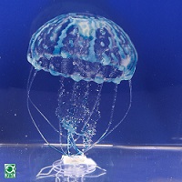 Riproduzione di medusa gelatinosa che si muove con l'acqua corrente. Non velenoso e silicone neutro all'acqua. 21 cm di lunghezza x 10 cm di diametro. Disponibile in bianco o blu. La medusa può essere fissata al vetro dell'acquario con l'ausilio di ventose o di una cinghia di nylon (tutto è incluso e pronto per essere installato). Effetto fosforescente al buio.
