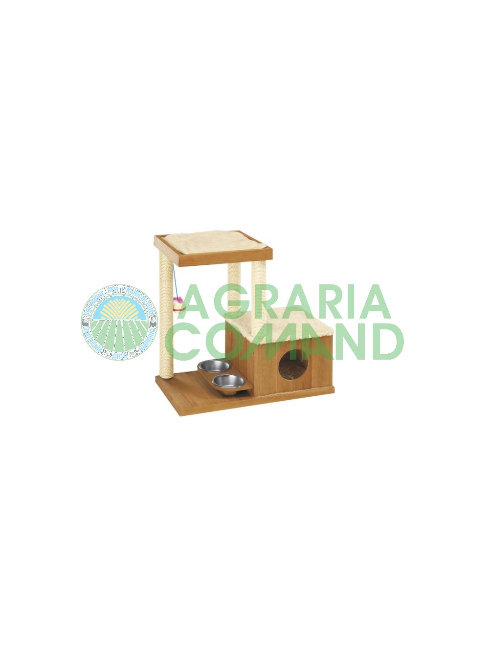 Saltagatto in legno con due ciotole in acciaio inox da litri 0,4Ā comprese nel prezzo