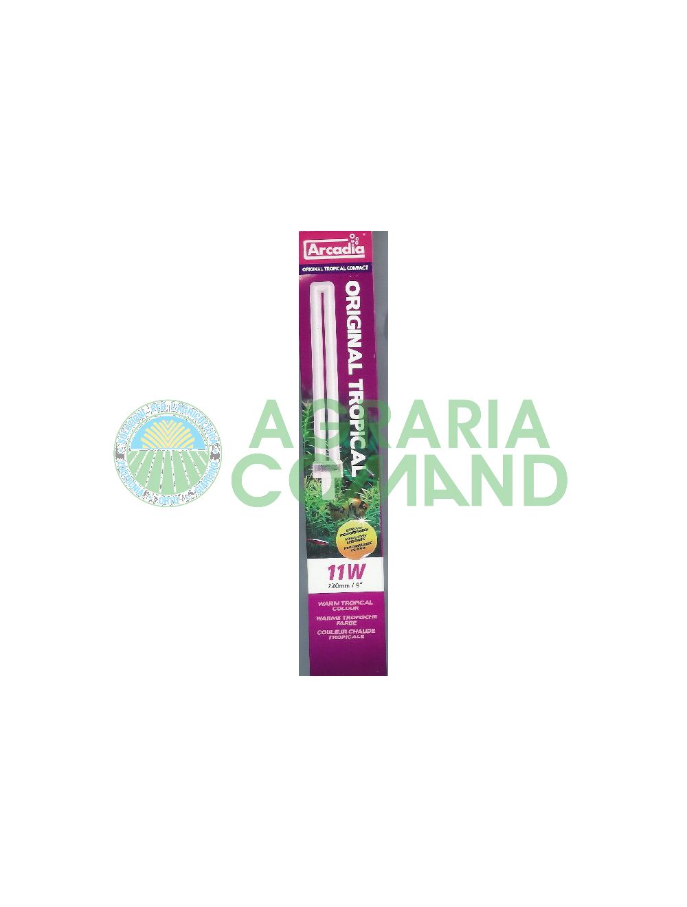 La lampada Original Tropical arcadia è stata ideata appositamente per accentuare i toni rosso e blu della luce naturale diurna necessaria per la fotosintesi. (Fotosintesi è chiamato il processo che tramite la luce unisce insieme due semplici sostanze , anidride carbonica e acqua, per produrre i carboidrati, l'alimento base di tutti gli organismi viventi, emettendo ossigeno quale sottoprodotto). Lo spettro di luce che ne deriva ha anche l'effetto di mettere in risalto le caratteristiche fluorescenti di pesci come itetra, neon, cardinali e guppy, evidenziandone i loro attraenti colori naturali e facendoli apparire ancora più brillanti. come molti amanti degli acquari sanno, questa lampada tende ad avere una sfumatura rosa/porpora, che crea nell'acquario una senzazione di tepore