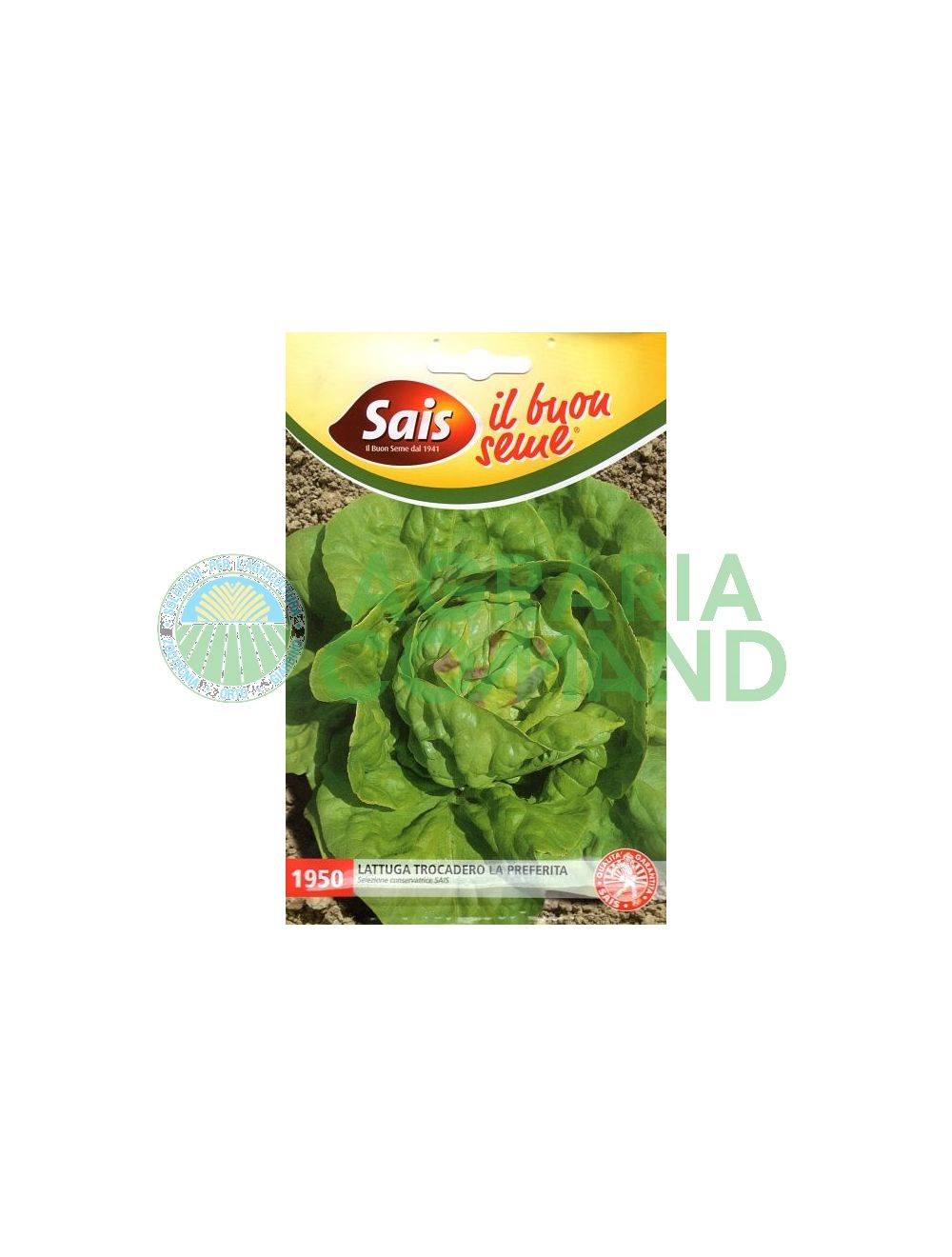 Seme lattuga trocadero.Seme nero, foglie esterne di colore verde chiaro con sfumature rosate ai bordi.