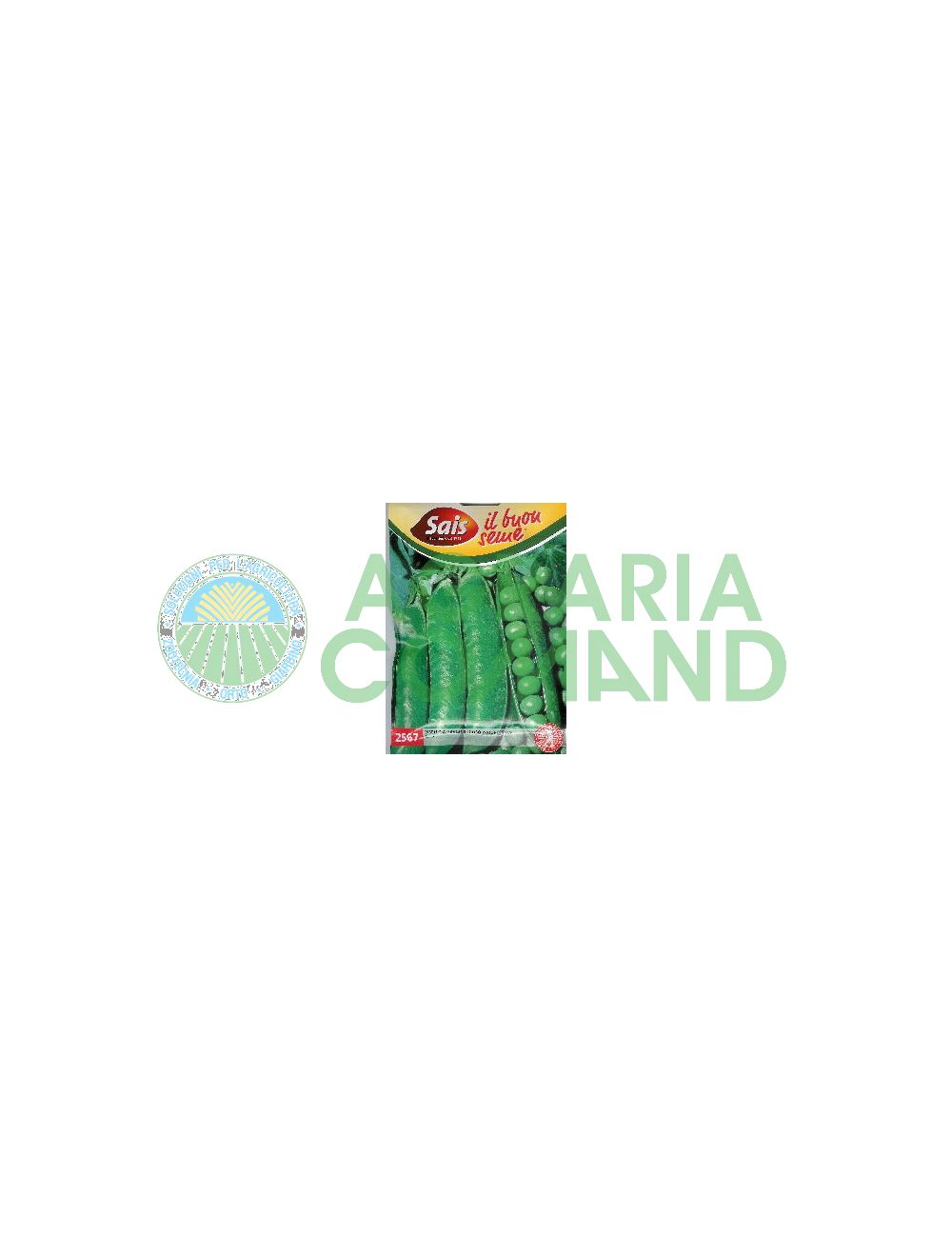Pisello seme di dimensione medio grossa,superficie rugosa, di colore verde medio. Pianta nana,alta cm.50 / 55. Foglie di colore verde scuro,maculate di chiaro.