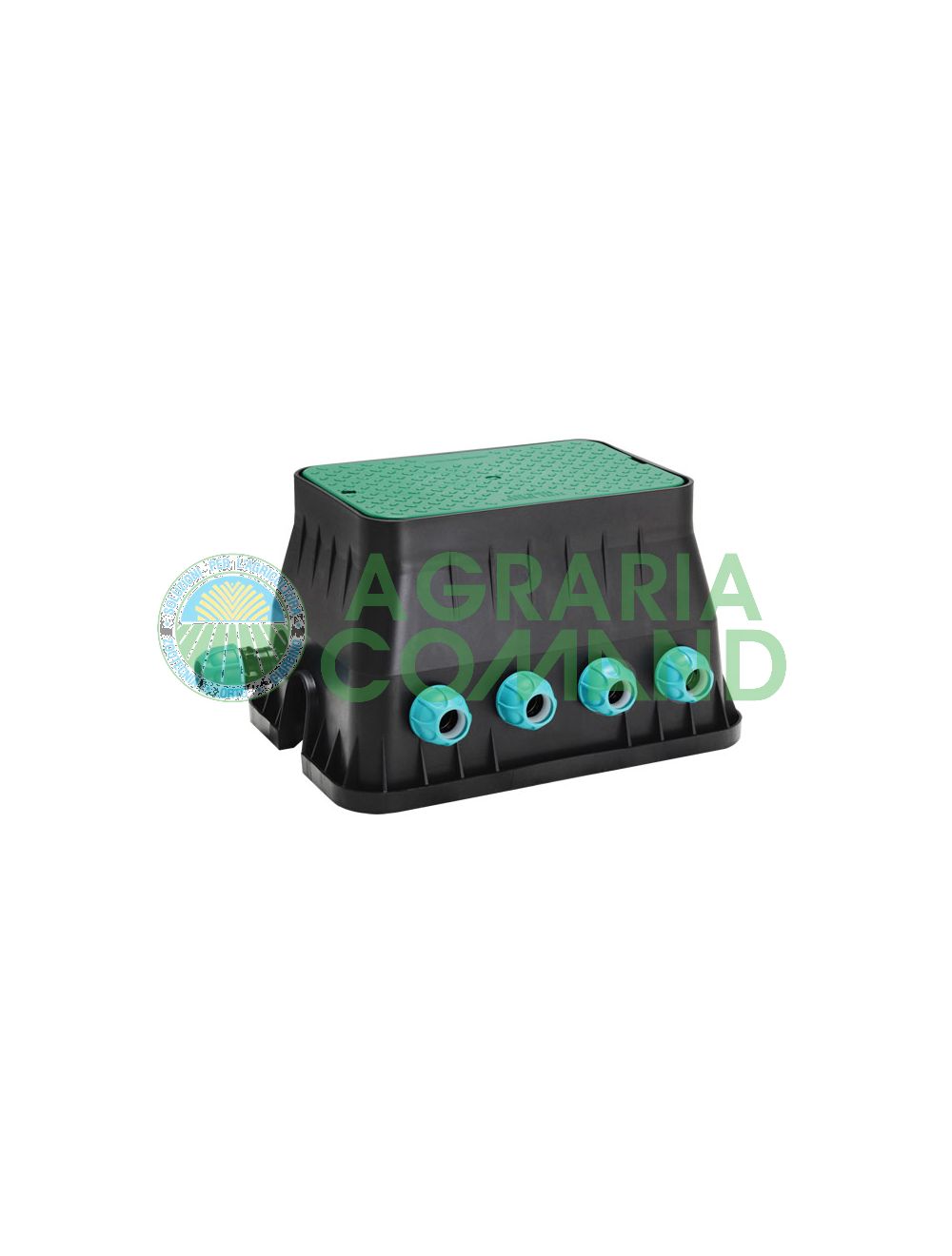 Pozzetto medio attrezzato con 4 elettrovalvole da 24V. Premontato con i raccordi 3/4” necessari e pronto all’installazione. Serve 4 linee d’irrigazione. Collegabile con programmatori a 24V (Cometa 8014 - 8016 o Multipla 24V 8058).
