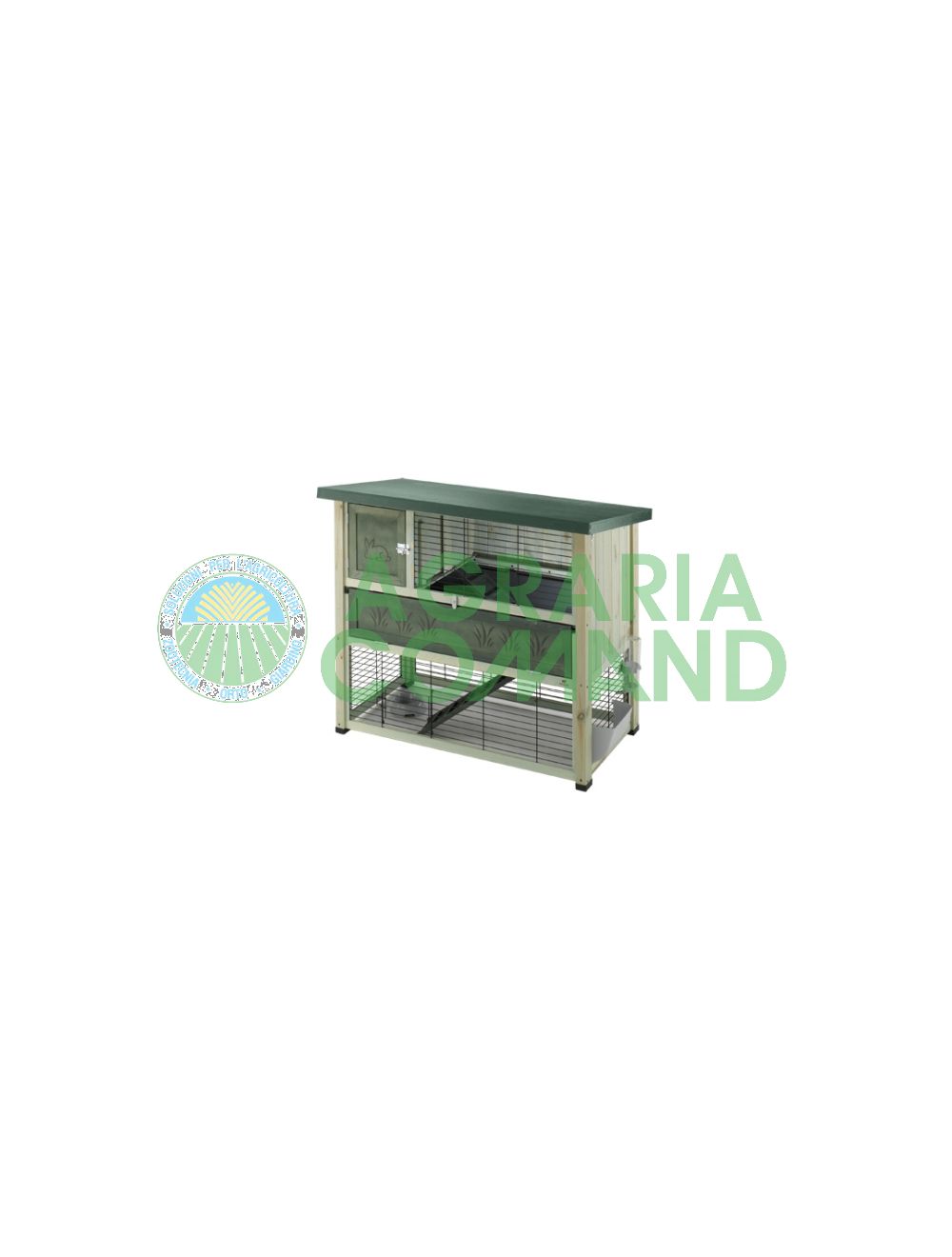 Gabbia conigliera Ferplast in legno di pino nordico di prima qualità. La conigliera è comprensiva di scaletta, ciotola, mangiatoia per fieno, abbeveratoio e di fondo estraibile.