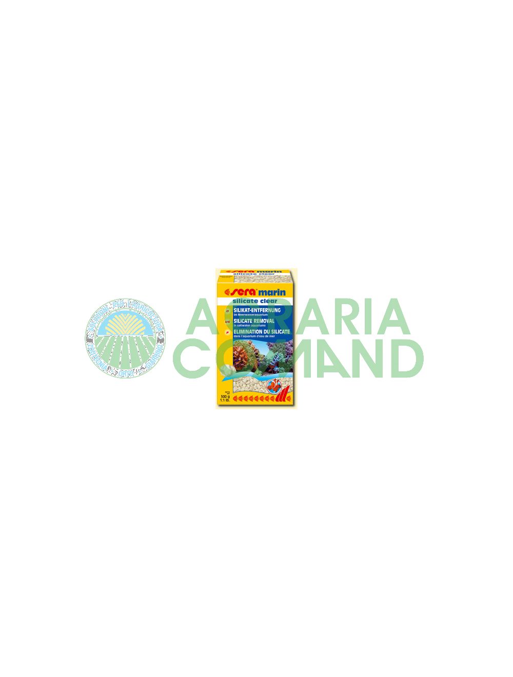 Prodotto per l'eliminazione dei silicati. SeraĀ marin silicate clear, nel pratico sacchetto di rete, va sciacquato brevemente sotto l'acqua corrente e poi messo nel filtro o in una posizione con forte movimento d'acqua. la sua azione dura, secondo la quantitĆ di silicati presenti, fino a 3 mesi. 500 gr.sono sufficienti per un acquario con capacitĆ di 200- 400 litri