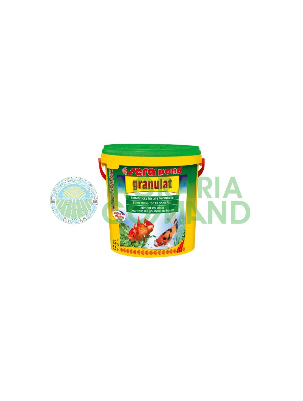 Mangime granulare Sera per laghetto. SERA pond granulat è un cibo base completo e galleggiante per tutti i pesci nel laghetto. Viene prodotto secondo le conoscenze scientifiche più aggiornate. Una lavorazione particolarmente delicata delle materie prime garantisce un'ottimale disponibilità delle sostanze nutritive. Le vitamine aggiunte e i sali minerali naturali favoriscono la vitalità e le autodifese dei pesci nel laghetto. Questo mangime in sticks è facilmente digeribile e aiuta i pesci in primavera ad affrontare al meglio la stagione. Questo mangime può essere distribuito per tutto l'arco dell'anno.