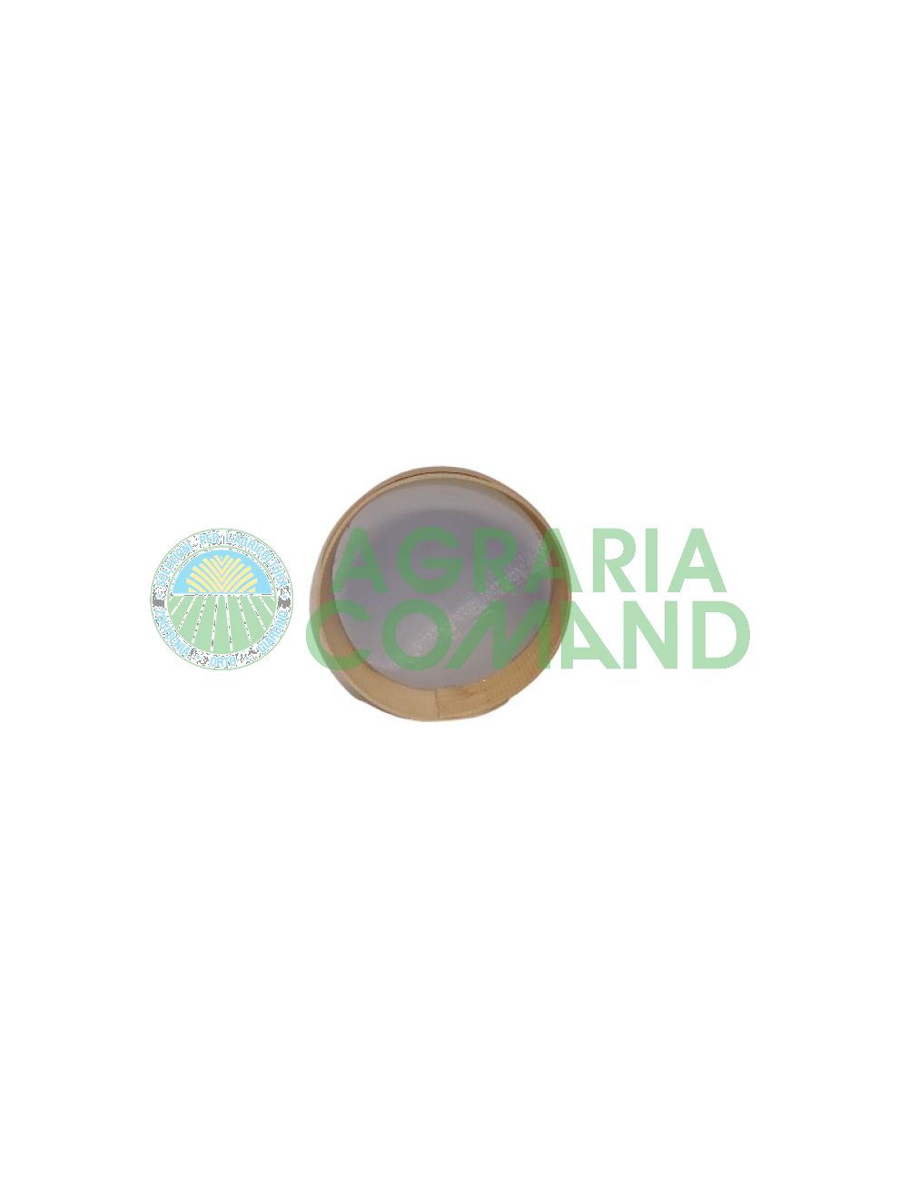 Setaccio con bordo in legno e rete inox fitta, il diametro del setaccio è di 20 cm.