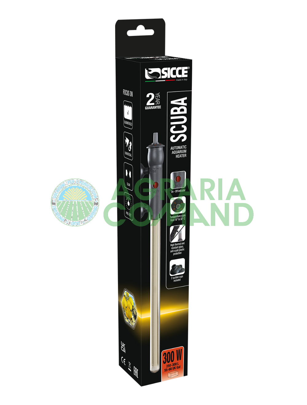 La gamma completa dei termoriscaldatori SCUBA include diversi modelli, da 50 a 300 Watt, per soddisfare le esigenze di riscaldamento di qualsiasi acquario.