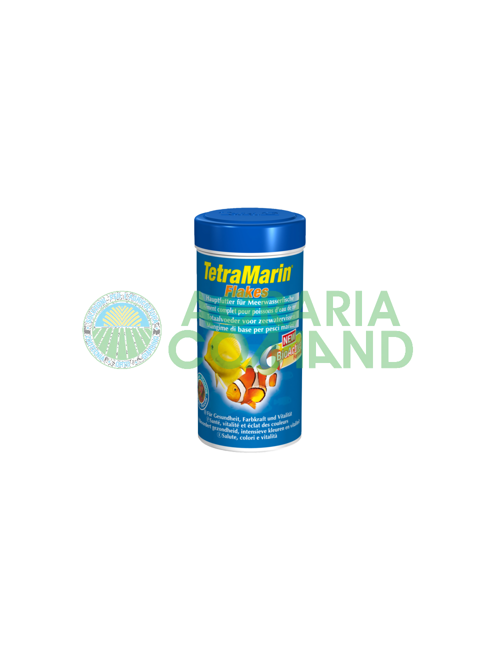 Mangime di base completo in fiocchi, per pesci marini di taglia piccola e grande.