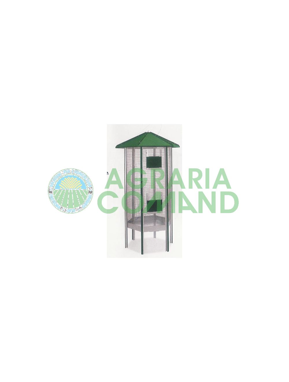 Voliera per uccelli esagonale zincata. La voliera ĆØ verniciata solamente i profili e il tetto il resto della voliera ĆØ zincato. La voliera ha il fondo in lamiera zincata ed ĆØ senza accessori.