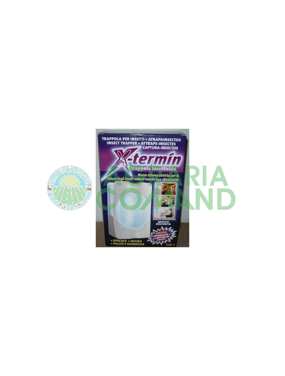 Trappola elettroluminosa per il controllo di mosche e zanzare.Area di copertura di circa 40 mq.Gli insetti volanti vengono atratti dalla luce e finisco incollati su una tavoletta collosa sostituibile una volta esaurita.