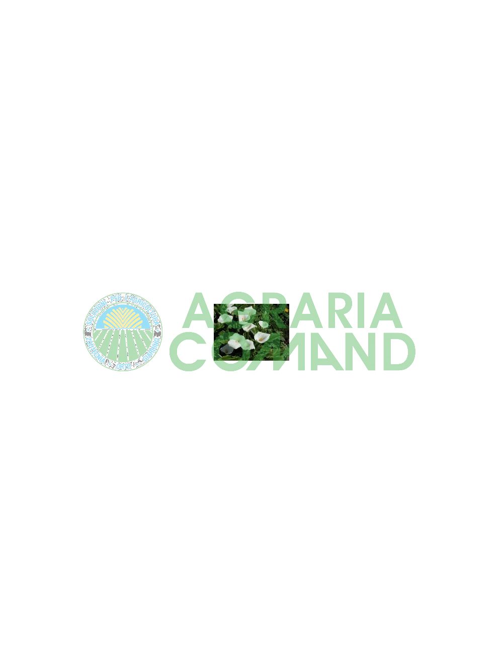 Detta "Calla" ; questa pianta rizomatosa soppravvive ai nostri inverni sia su una riva, che in terreni più asciutti. Brattea bianca a circondare l'infiorescenza gialla. H.max. : 60/80cm. Profondità d'impianto : 0/-10cm. Mese di fioritura : Aprile/Luglio Posizione : pieno sole o ombra parziale.